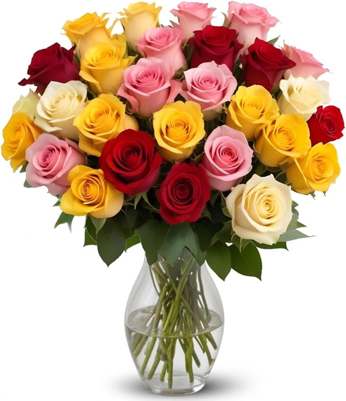 Red, Pink, Yellow, White, and Assorted roses available in small, medium, large, and deluxe bouquet size. (Glass vase included)
